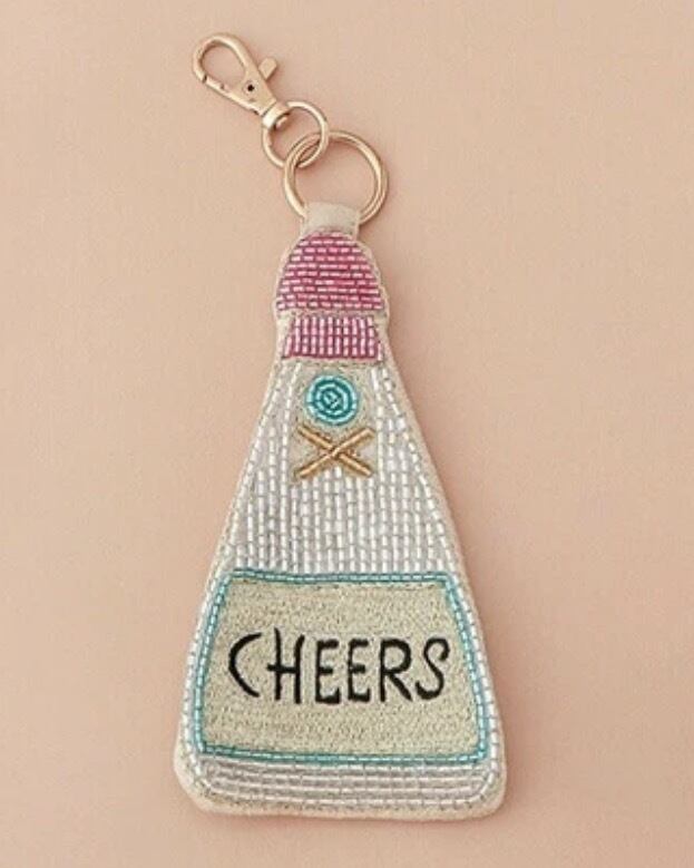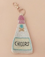 いつでもどこでも乾杯!シャンパンボトルデザインのキーポーチで、気分も華やかに♪ キラキラ輝くカラフルなビーズがアクセント。ボトルには“CheerS(乾杯)”の刺繍入りで、見るたび楽しくなっちゃう!