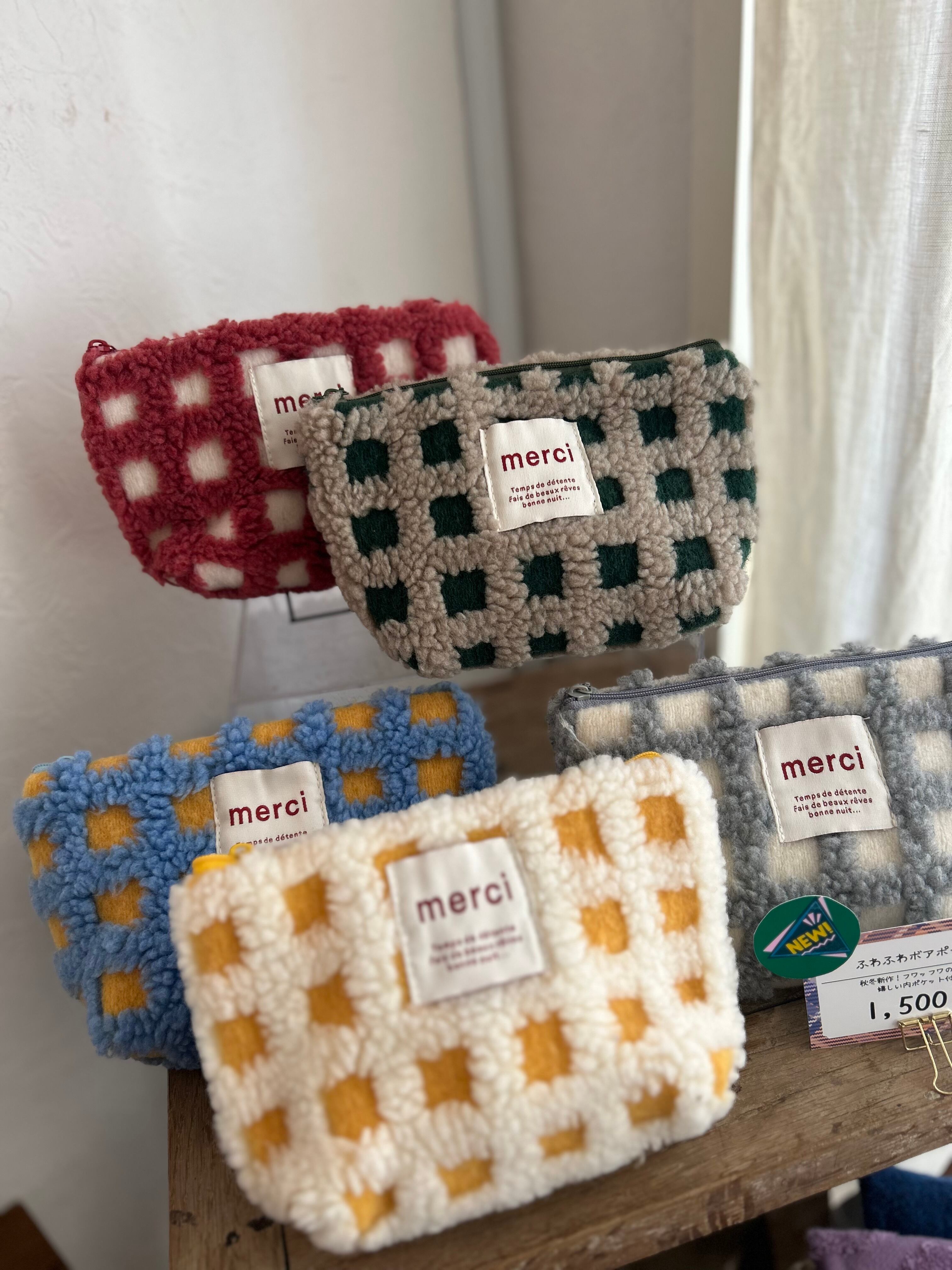 ふわっふわのチェックがかわいい、秋冬新作!舟形ポーチ!バックから取り出すたびに、このポップカラーがテンション上がっちゃう!内側のポケットが2つあるから、小物の仕分けもしやすいよ!