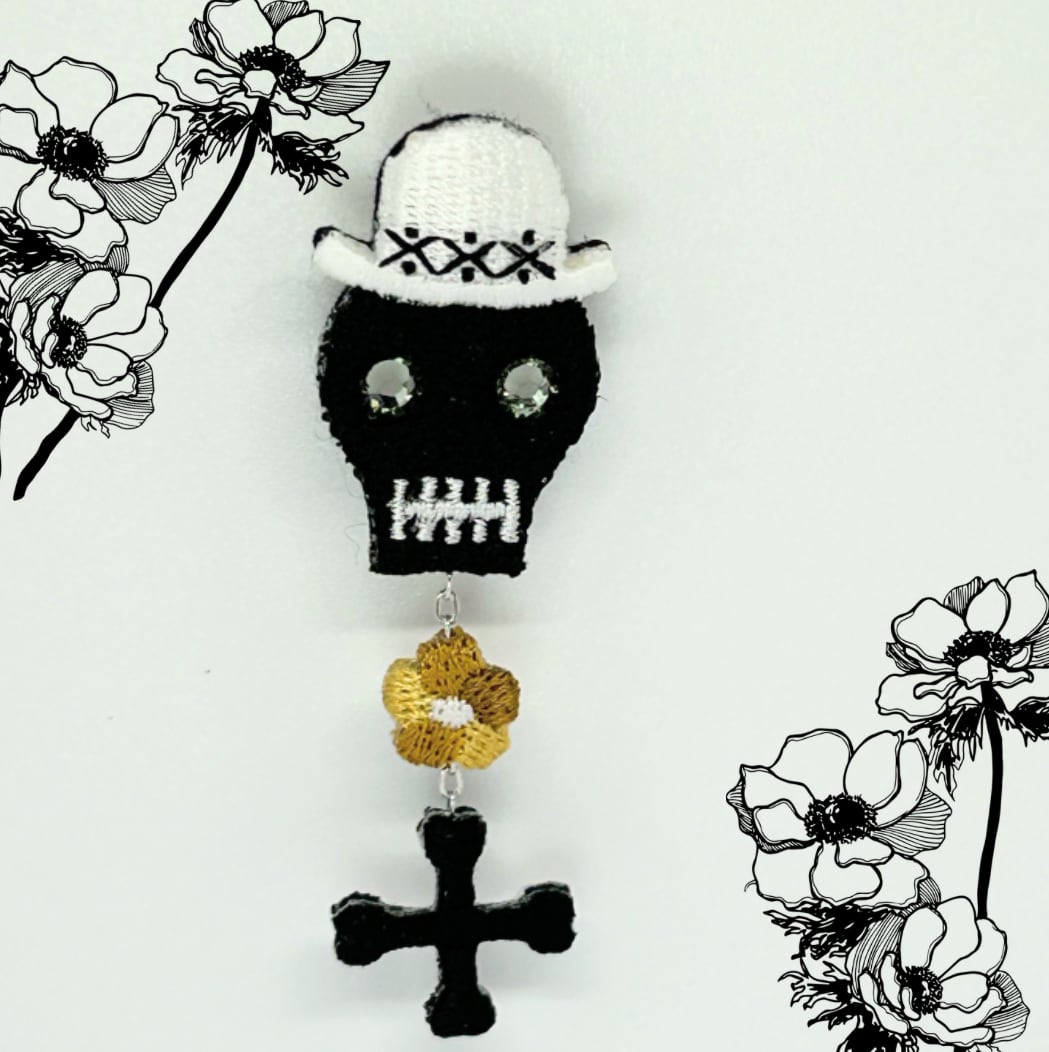 オシャレなボーラーハットがお似合いのダンディなおじさまスカルちゃん♡歩くたびユラユラ揺れ、時折光るスワロフスキーの目に狙われたらイチコロです(笑)白と黒を2つ付けても可愛いくてオススメですよ♡