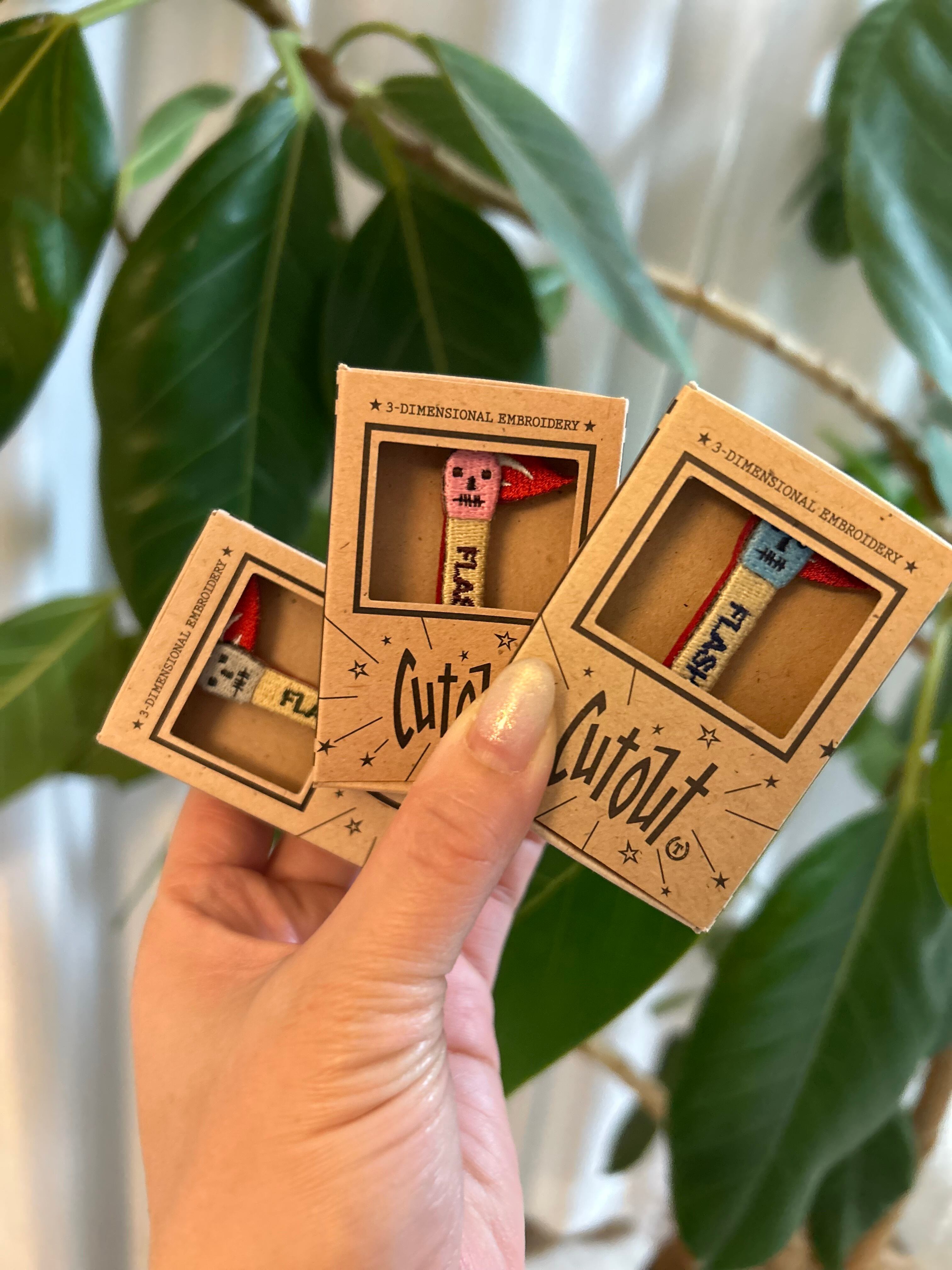 cutout pinsのオリジナルボックスは、マッチ箱をイメージして作られたそうでふ!